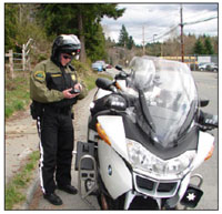 Traffic enforcement stops result in large numbers of arrests, especially when officers check remote data bases for outstanding warrants. In a recent study, 37% of all arrests made by a police department were made as a consequence of traffic enforcement stops. Most traffic enforcement stops are made by motorcycle officers, but motorcycles are not equipped with computers that permit officers to make the queries themselves. In many law enforcement agencies, busy radio channels result in 10 to 20 minute delays in receiving a response from a dispatcher to a license plate or driver’s license query. For this reason, checks for wants and warrants are made in only a small proportion of enforcement stops. The Mobile Officer’s Assistant corrects this problem by pro-viding officers with unhindered access to remote databases.